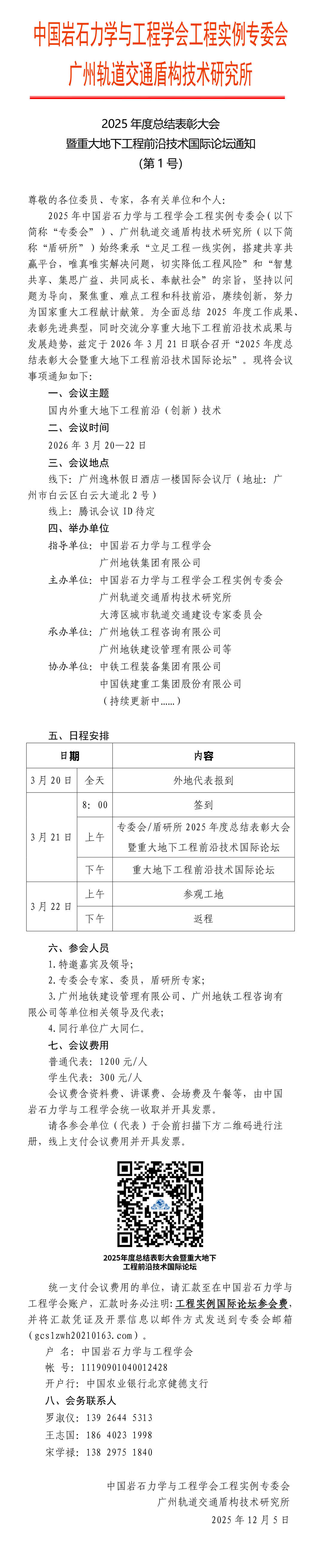 2025年度总结表彰大会暨重大地下工程前沿技术国际论坛通知(第1号)